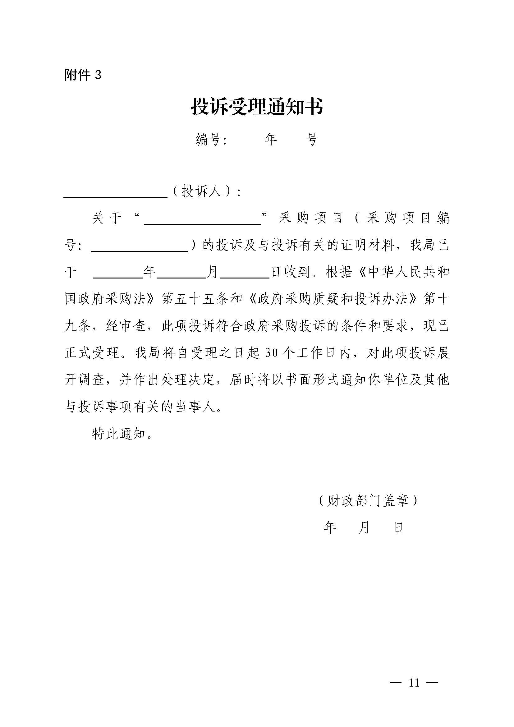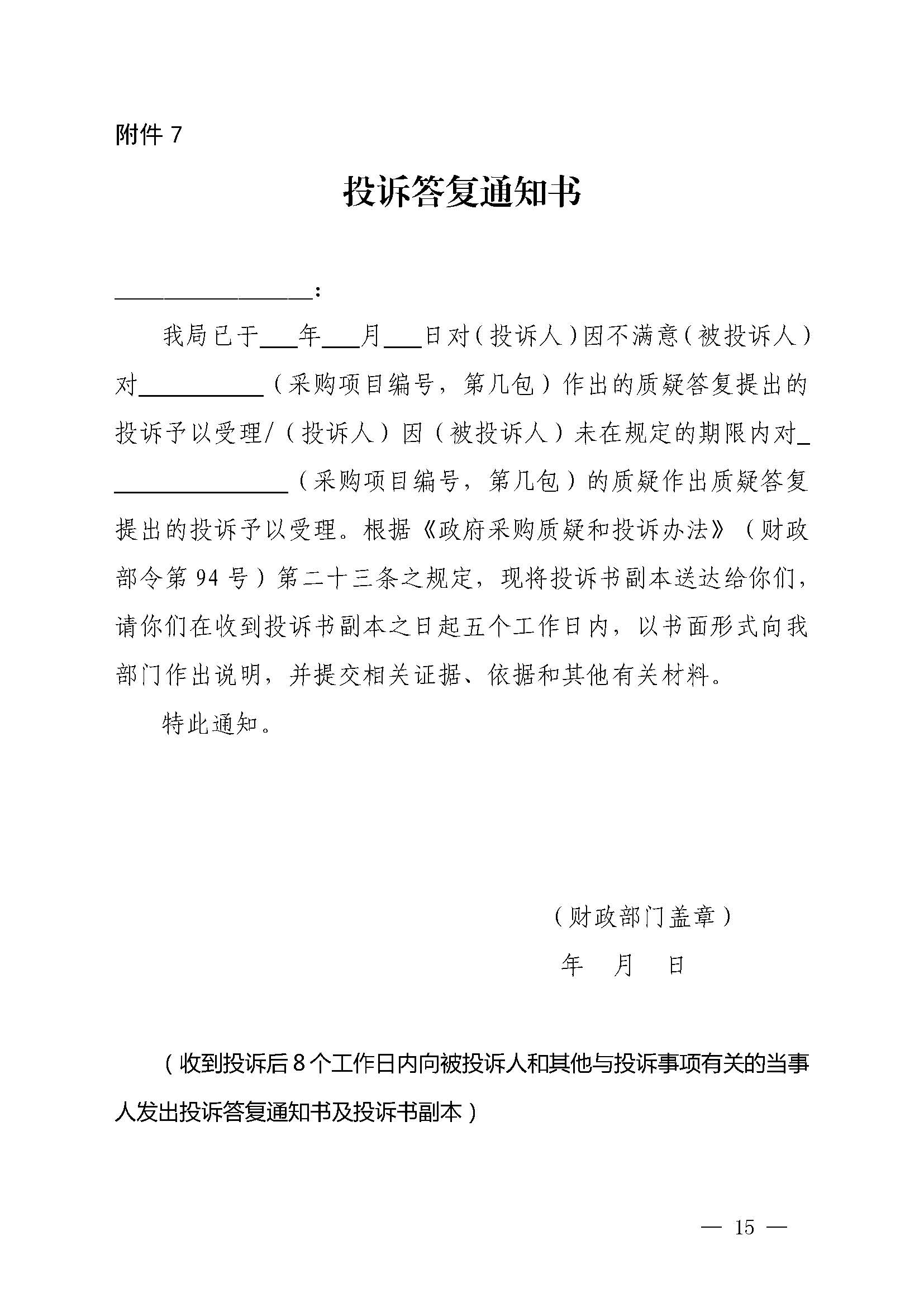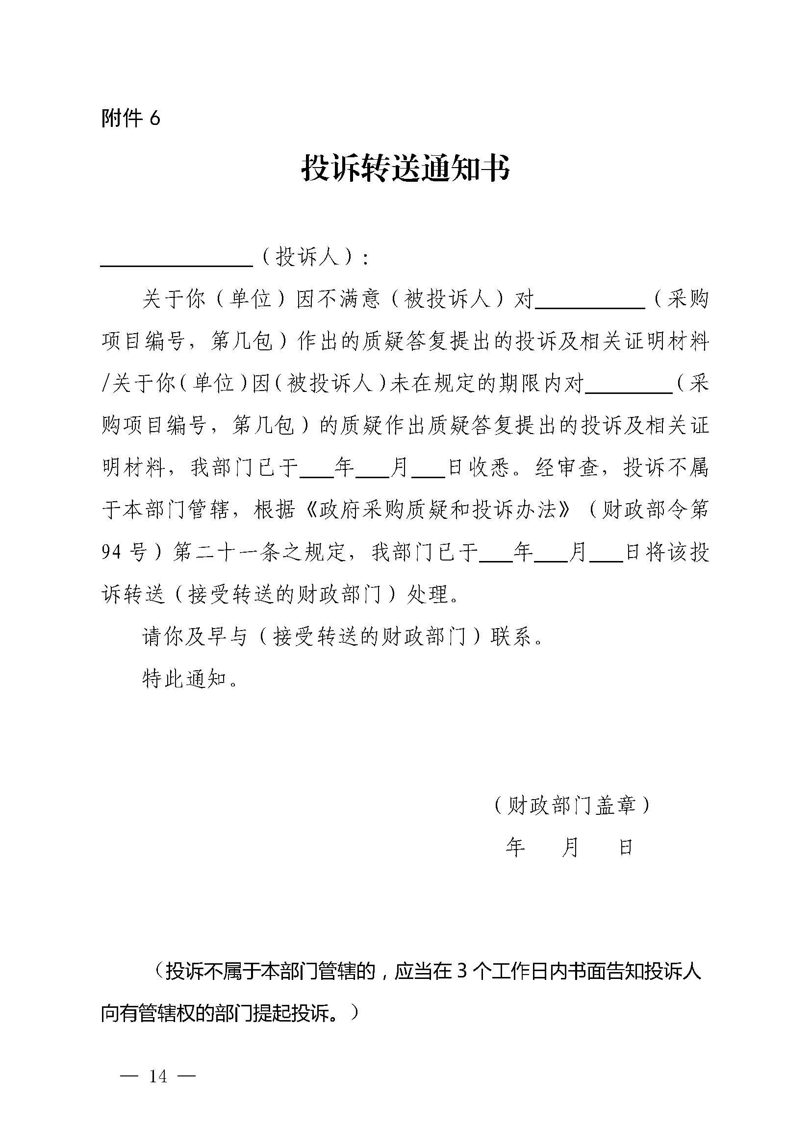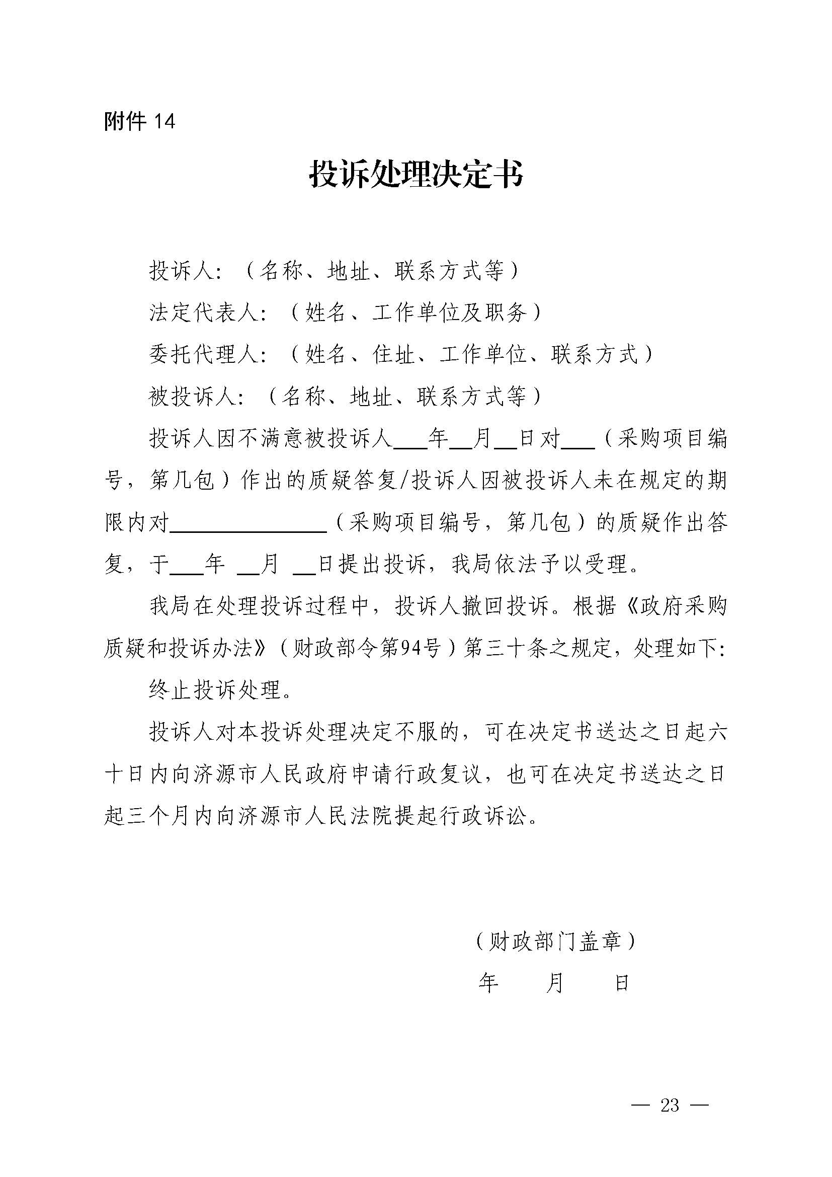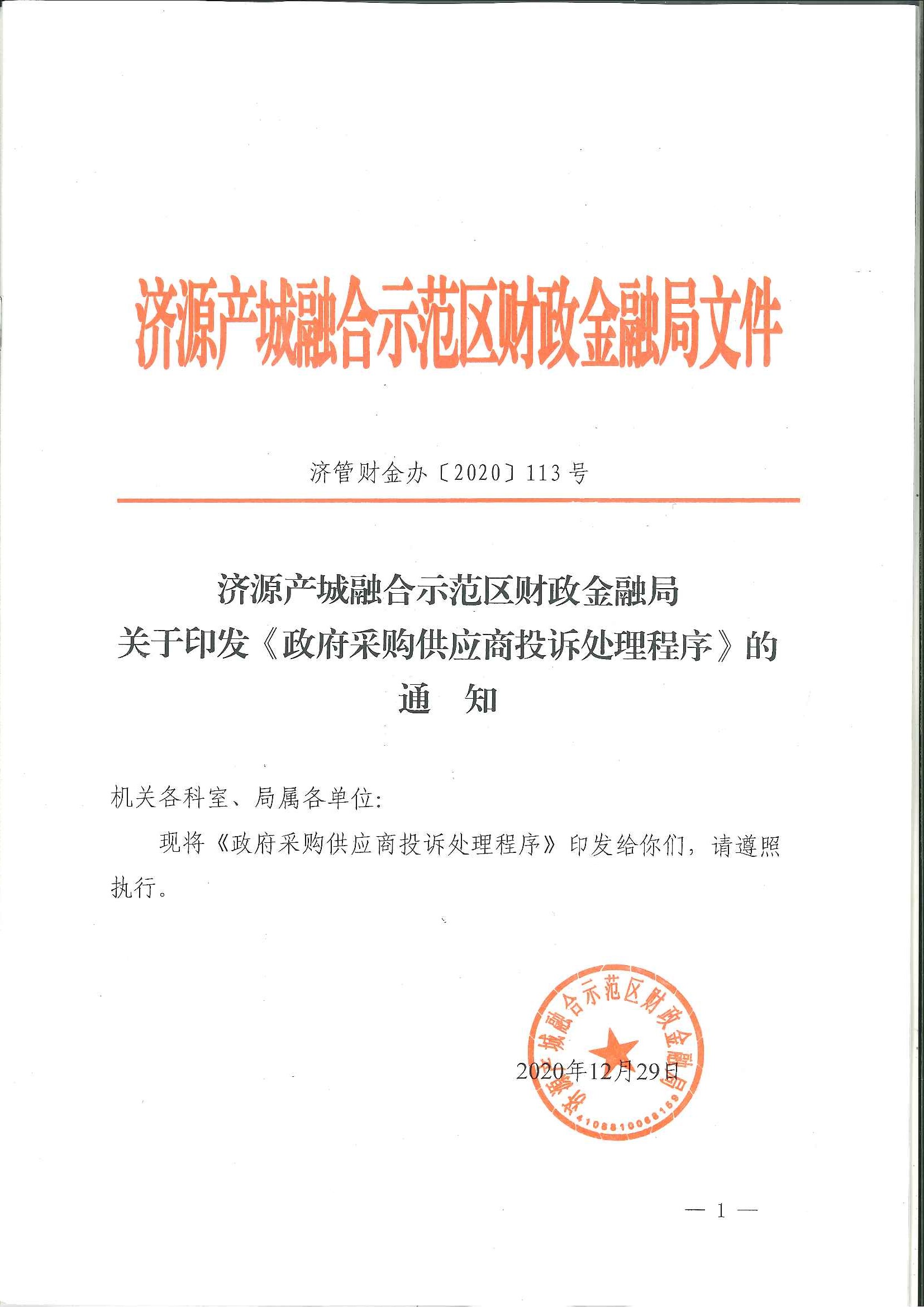 济源产城融合示范区财政金融局关于引发《政府采购供应商投诉处理程序》的通知(济管财金办〔2020〕113号)